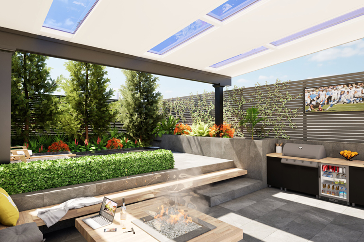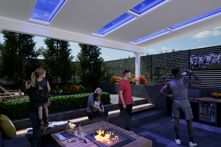 The Studio Skyview Patio Cover offers an innovative design with a skylight feature, allowing you to enjoy the beauty of the sky above while being protected from the sun and rain. The sleek, glass or polycarbonate panels in the roofing provide a stunning, unobstructed view of the outdoors while allowing natural light to flood your space. Whether it’s sunny skies or starry nights, the Studio Skyview Pavilion ensures you can enjoy the outdoors in a completely new way.